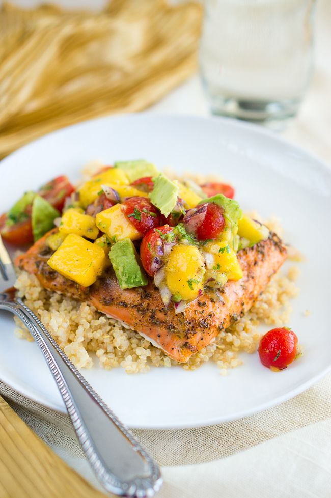 Grilled Salmon With Mango Avocado Salsa Grilled Salmon With Mango Avocado Salsa : Grilled salmon with salsa ingredients, recipe directions, nutritional information and rating.
